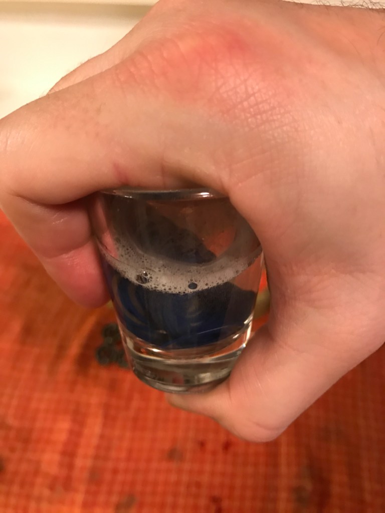 The rubber coated metal shields aren’t really suitable for cleaning with isopropyl alcohol because the alcohol will react with the plastic, and you don’t want that. That said, we’ll add lukewarm water and a small drop of hand soap or another gentle cleanser into the shot glass with the shields.